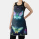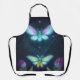 Das Bild zeigt ein lebendiges und fantastisches Wesen, das einer Hybride zwischen einem Schmetterling und einer Gottesanbeterin ähnelt. Die Kreatur steht aufrecht auf einem Paar schlanker, segmentierter Beine, umgeben von üppig grünen Blätter. Sein Körper besteht aus einer Reihe von bunten, geschichteten Blütenblättern und Blätter, die ihm ein Blumenmuster verleihen. Die Flügel sind groß und hell, mit violetten, Blues und Grüntönen mit auffallenden, symmetrischen Mustern und dunklen Konturen. Der Kopf der Kreatur ist klein und Alien-ähnlich mit großen, leuchtenden rosa Augen, die ein Gefühl von Rätsel und anderer Weltanschauung hinzufügen. Über der Kreatur glänzt ein leuchtender Himmelsmond mit einem wirbelnden Design hell im dunklen, grünen Hintergrund, was die magische und bezaubernde Atmosphäre der Szene verstärkt.