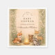A heart-melting woodland design featuring a sweet gathering of forest friends beneath a soft storybook canopy. Fox, fawn, bear, raccoon, and bunny sit together in a warm autumn meadow framed by gentle trees and vintage parchment tones. The earthy palette and delicate botanical details create a cozy, nostalgic feel—perfect for a nature-inspired celebration. Fully customizable to make it uniquely yours.