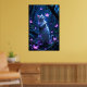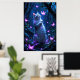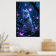 Enchanting kitten in a magical forest with glowing poster