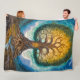 Stay cozy while surrounded by magic with this warm fleece blanket. Featuring a mesmerizing Tree of Life illustration with radiant golden leaves, swirling roots, and a deep blue mystical sky. This aesthetic home accessory adds a touch of epic fantasy and spiritual serenity to your favorite reading nook.