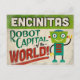 Ein lustiges Reisedesign von Encinitas California mit einem freundlichen Roboter im Retro-Stil, der sagt: "Encinitas, Roboter-Hauptstadt der Welt!"