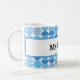 Retro coffee mug featuring mid century modern half moon blue pattern.