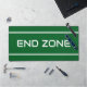 This sporty design features white modern football END ZONE text and sleek edge stripes against forest green background. The text and colors in this design can be personalized.