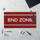 This sporty design features white modern football END ZONE text and sleek edge stripes against deep red background. The text and colors in this design can be personalized.