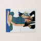 Künstler: Coby Whitmore | Weibliche in blauem und grünem Gewand sitzend auf Bodenkissen