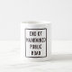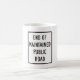 Ein Straßenschild, das das Ende der gepflegten öffentlichen Straße sagt. Dieses Design sieht auf dieser Tasse wirklich effektiv aus