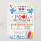 Die Einladung enthält ADORABLE Wasser & Pool Grafik und helle Farben Design!