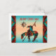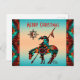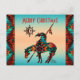 Personalisieren Sie dieses "Eine von einer Art" Ende der Trail Weihnachtskarte! Es verfügt über ein indisches Ende des Trails indischen und Pferd auf einem türkisfarbenen und orangefarbenen Sonnenuntergang...umgeben von einer türkisfarbenen, orangen und schwarzen Grenze! Original Art Design von Künstler Kerry Miller.