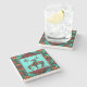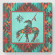 Dies ist ein einzigartiges "One of a Art" Ende des Trail Stone Untersetzer! Es verfügt über das indische Indianerende Ende des Trails und Pferd unter der Sonne auf einem türkisfarbenen Hintergrund...umgeben von einer Südwestgrenze in Türkis, Orange & Schwarz! Original Art Design von Künstler Kerry Miller.