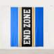 Dieses sportliche, sportliche Design zeichnet sich durch einen fett gedruckten Text im ENDE-ZONE-Format in einem schwarzen, hervorgehobenen Streifen mit doppelweißen und gelben Rennstreifen und leuchtend blauen hintergrundgelben Streifen aus. Der Text in diesem Design kann personalisiert sein.