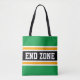 Dieses sportliche Design zeichnet sich durch einen fett formatierten Text in der ENDE ZONE in einem breiten, schwarzen, horizontalen Mitte-Rennstreifen aus, der mit schwebenden weißen und goldgelben Pinstreifen gegen leuchtend grüne Außenstreifen hervorgehoben wurde. Der Text kann personalisiert sein.