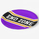 Dieses sportliche, sportliche Design zeichnet sich durch einen fett formatierten Text in der ENDE ZONE aus, der in einem schwarzen, hervorgehobenen Streifen mit zwei weißen und gelben Rennstreifen gegen lila, kräftige Außenstreifen aufgetragen wird. Der Text in diesem Design kann personalisiert sein.