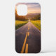 A long, empty road stretching through a vast desert landscape under a warm sky.