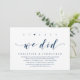 Modern Script Classy Navy Blue Thema, Hochzeit Einladung Karte (At Yes, We did). Es ist ideal für Ihre Hochzeit lässige Seefelder.