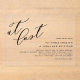 Feiern Sie Ihre zeitlose Liebe mit unserer maßgeschneiderten Acryl-Hochzeitseinladung mit dem eleganten Satz "At Last" in schöner moderner Kalligrafie. Dieses minimalistische und dennoch auffällige Design verbindet transparentes Acryl mit fließender handgeschriebener Kalligraphie. Personalisieren Sie, indem Sie Ihre Namen und Hochzeitsdetails hinzufügen. Diese elegante Hochzeitseinladung ist perfekt für jedes Hochzeitsthema; ob Sie ein minimalistisches, romantisches oder modernes ästhetisches Thema bevorzugen, das klare Acryl und die elegante Schrift ergänzen jedes Thema. Diese Hochzeitseinladungen aus Acryl sind lang anhaltend und bieten Ihren Gästen ein wunderschönes Memento, das sie nach ihrem Hochzeitstag noch lange genießen können.