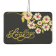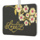 Friseur mit schwarzem Hintergrund, hübsche cremefarbene und hellrosa Blume mit goldenen Blätter und goldener Text, der die endlose Liebe liest.
