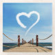 Eine Holzbrücke - ein endloser Weg zum Ozean mit einem Herz am Himmel, aus Wolken.