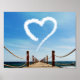 Eine Holzbrücke - ein endloser Weg zum Ozean mit einem Herz am Himmel, aus Wolken.