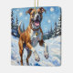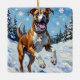 Energetic Boxer Dog Leaping in Winter Snow Fun Keramikornament