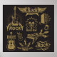 Rock Music Rock mit viel Leidenschaft weiter! Der rebellische Rhythmus des Lebens. Mit dieser dynamischen Musikikonographie, die den Geist einfängt, kommen Rock, Musik, Rolle, Illustration, Gitarre, Band, Metal, Grunge, Festival, Tattoo, Lautsprecher, Rocker, hart, Vintag, schwer, Party, Star, Abzeichen, Bier, Live