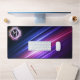 Eine dynamische Verschmelzung von goldenen und aquamarinen Lichtstreifen schafft ein faszinierendes Gefühl von Bewegung und Energie und strahlt Wärme und Tiefe in einem abstrakten Fluss aus.