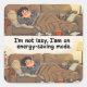 Show off your laid-back side with this square sticker featuring a young man lounging under a thick tan blanket on a cluttered sofa. Surrounded by snacks, a red coffee mug, and a warm lamp glow, he embodies pure comfort. The bold, rounded text reads: “I’m not lazy, I’m on energy-saving mode.” Perfect for laptops, water bottles, notebooks, or as a fun mood statement. Durable and playful, this sticker adds humor and charm wherever you stick it.