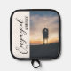 Engaged and merry photo potholder. Photo template via Pixabay licensed under CC0 and must be replaced with your own photo