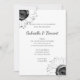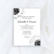 Erleben Sie das verlobte Paar mit der stilvollen Einladung zur Black and White Sunflower Engagement Party. Diese elegante, typisch florale Party lädt mit schwarz-weißen Sonnenblumen an den Ecken ein.