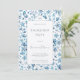 Engagement Party Einladung mit kleinen blauen Blumen Blumenmuster. Handgezeichnete abstrakte Blume und Blätter auf weißem Hintergrund. Festlicher Verzierter blumengeschmückter Hintergrund. Abstrakte, blumengeschmückte Kulisse mit blumengeschmückten Ästen. Vintage, niedliche Blumenzweige aus goldgelben Blättern, elegante Blume, Blumenmuster im Frühling oder Sommer, romantisches Bouquet. Botanisches Grundstück. Die Niedliche Blume der Goldfolie ist die Voraussetzung für die Einladung der Engagement Party. Sammlung kleiner Blume.
