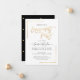 Engagement Party Einladungen, mit einem schönen modernen, handgeschriebenen Drehbuch-Schriftart in Imitats Gold und DIY Hintergrund Farbe betont. Copyright © 2016-2019 Bombino Designs.