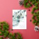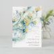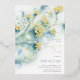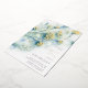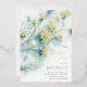 Engagement Party Einladung mit kleinen weißen Blume. Handgezeichnete abstrakte Blume auf blaugrünem Hintergrund. Weiche, Verzierte Aquarellmalerei. Abstrakte Naturkulisse mit niederen Zigeunerzweigen. Vintage niedliche Blumenzweige, elegante Blume, Blumendesign im Frühling oder Sommer, romantisches Bouquet. Botanisches Grundstück. Delikate Blume ist die Einladung einer engagierten Partei. Kleine Kollektion weißer Blume.