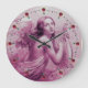 ENGEL, der LYRA ÜBER der WOLKEN rosa Fuchsie Große Wanduhr