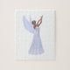 Dieses Ausrüstungsbeschreibungen ein schöner dunkelhäutiger Engel in einem flüssigen blauen Kleid. Fühlen Sie sich frei, Ihre eigenen Wörter/Bilder/Hintergrundfarbe über Zazzles große Kundenbezogenheitswerkzeuge hinzuzufügen! Dieser Entwurf wurde vorbei geschaffen und verwendet mit Erlaubnis von, http://www.outlawgraphics.com/