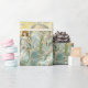 Vintages Gemälde in Pastellfarben mit Engel in hellblauem Kleid und Blume halten.