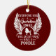 Jeder hat einen Schutzengel, die Glücklichen haben eine Poodle Hundezüchtung Typografie Wortdarstellung in gemischter, weißer Schrift und Schriftart in Großbuchstaben mit zwei großen Flügeln mit weißem Engel, Schriftzügen und einer Silhouette mit weißem Hund.