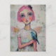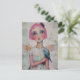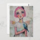 Engel mit rosa Haar und blauem Vogel Postkarte