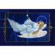Linda Baysinger die Malerei Pecks eines Weiß, Fliegenengel, mit blauem nächtlichem Himmel, Wolken und Sternen. Goldumgeben metallische Blickgrenze und -rollen die Ränder.