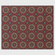 Ein verwickelter, Kaleidoskop Mandala im reichen Rot und ein königliches Lila betont in den Goldtönen, in einer Überschneidung, wiederholen Muster. Die Formen im Entwurf sind von den Fotografien der verwickelten Entwürfe der Buntglaskirchenfenster. Die Farben kommen von den Roben der dargestellten Engel und der Heiligen.