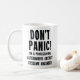Diese wunderschöne weiße Tasse enthält den Satz 'Keine Panik! Ich bin Ingenieur für Berufliche alternative Energiesysteme." Es ist ideal für alle, die im Bereich der erneuerbaren Energien arbeiten, eine großartige Ergänzung zu jedem Büroschreibtisch oder ein nachdenkliches Geschenk für einen Kollegen, der eine Werbeaktion oder Leistung feiert.