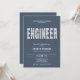 Ein Hintergrund für die Entwicklung von Designs über Stahlgrau Papier, mit dem gleichen Ingenieur-Papier-Effekt auf den kühnen Buchstaben, die das Wort ENGINEER zu schreiben, schmücken diese moderne, elegante und klassische Graduierungsparty oder feiert Einladung für einen neu geprägten Ingenieur. Das generische Design passt für viele Arten von Ingenieurabschlüssen, vom Maschinenbauer über den Elektroingenieur, Computeringenieur, Chemieingenieur und vieles mehr. Passen Sie jede Textzeile an, um die Zeremonie des Abschlusses und danach Party, oder nur das Party, eine Feier des offenen Hauses... etc. einzubeziehen.