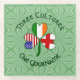Kleeblatt enthält in jedem Blatt eine Fahne: Die Flaggen von England, Irland und USA sind alle gefunden. Das Hotel ist für die Feier von englischen Feiertagen, irischen Feiertagen (z.B. St. Patrick's Day) und Feiertagen in den USA (z.B. 4. Juli) konzipiert. Hintergrund ist von hellgrünen quadratischen Quadraten. Oben stehen DREI KULTUREN. Unter einem IHRER NAMEN. Geben Sie Ihren Namen an der für eine personalisierte Touch geeigneten Stelle ein. Fügen Sie für ein individuelles Geschenk den Namen eines anderen hinzu. Wörter sind dunkelgrün, keltischer Stil, kreisförmige Buchstaben.