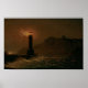 Ein großer Leuchtturm brennt heftig gegen die Dunkelheit der Nacht, Flammen, die in den Himmel springen und vom Wasser unten reflektieren. Boote stürzen sich in die Flamme, als Figuren auf der Küstenwache in Horror und Ehrfurcht. Rauch schwebt über die Sterne, und der Ozean leuchtet mit dem unheimlichen Licht des Desasters.