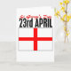 Die englische Flagge von St. George in patritoisch rot und weiß, mit den Worten "St. George's Day" und "23. April" oben geschrieben.