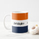 Ein klassisches zweifarbiges Design von orangen und blauen Farbblöcken mit einem lustigen Zitat dazwischen. Das Zitat lautet - ein Engländer in New York - und es ist personalisiert, was leicht geändert werden kann.