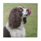 Foto von einer Leber und weiß Englisch Springer Spaniel sitzen.