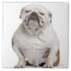 Englische Bulldogge, sitzend vor Weiß Fliese