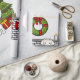 Desteis originelle Cartoon Illustration einer niedlichen englischen Creme Golden Retriever Rasse Hund. Der Hund ist in einem festlichen Wohnzimmer mit Kamin untergebracht. Der Kamin ist eingeschaltet und hat zwei rote Strümpfe an der Seite. Auf dem Kamin befindet sich ein grüner Kranz, der mit einem roten Bogen und gelben Kreisen als Lichter dekoriert ist. Auf dem Mantel stehen drei kleine Dreiecksbäume, die ebenfalls mit gelben Kreisen als Lichter geschmückt sind. Auf dem Mantel befinden sich auch zwei beige Kerzen. Neben dem Kamin befindet sich ein festlich grüner Weihnachtsbaum mit zwei Geschenken. Der Weihnachtsbaum ist mit roten und gelben runden Ornamenten und einer grauen Garage dekoriert. Auf dem Baum ist ein gelber Stern.