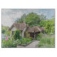 Eine schöne Aussicht auf eine englische Hütte, die auf einem Glasbrett gedruckt wurde.