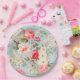 Diese Teller sind mit einem englischen Blumengarten mit großen rosa Rosen, weißen Gänsen, rosa Gänseblümchen und farbenfrohen kleinen weißen Blume, moosgrünen Blätter und botanischen Pflanzen ausgestattet. Lassen Sie sich am Abend mit einem Party von Eleganz und Eleganz verwöhnen!
