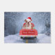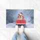 Ein Weihnachtswagen, der durch den Schnee fährt und Weihnachtsgeschenke und den englischen Bulldoggen liefert. Eine perfekte Weihnachtsgeschenkidee für jemanden, der diesen Hund züchtet.